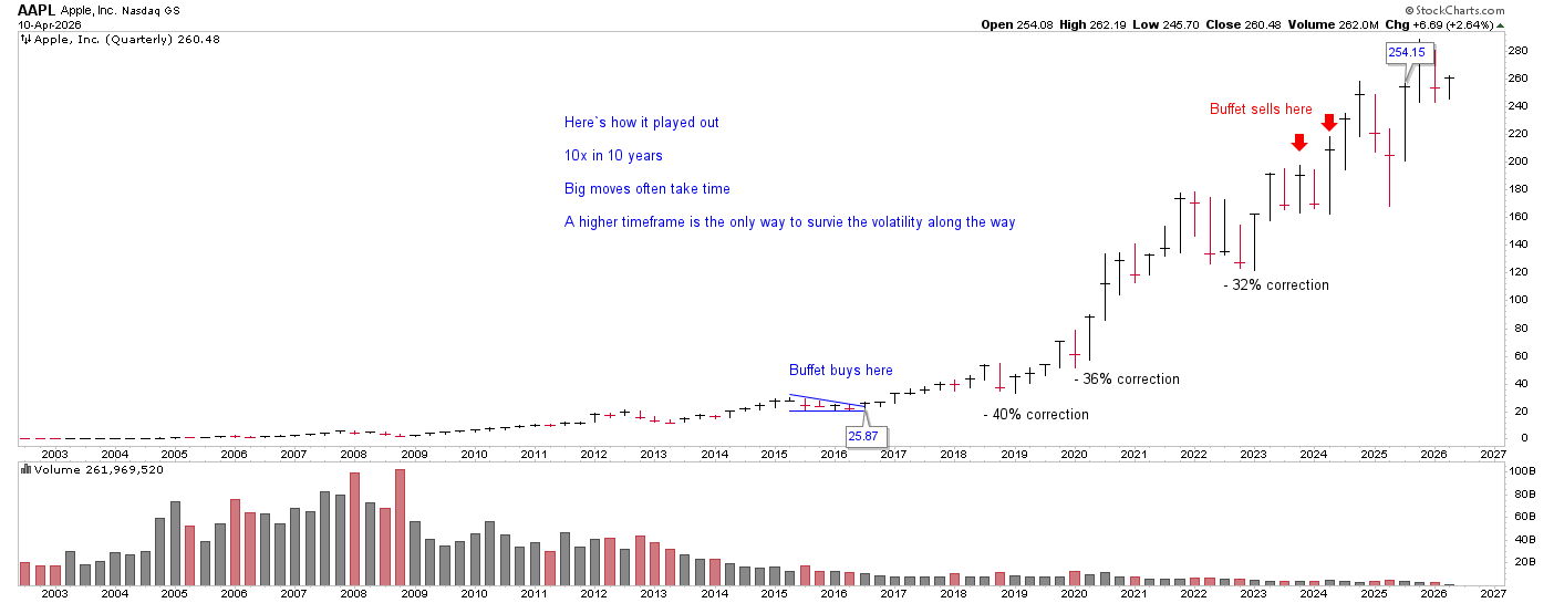 Buffet's Apple Trade Simplified with a Quarterly Chart