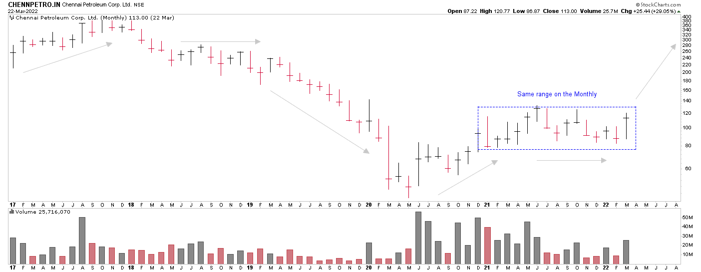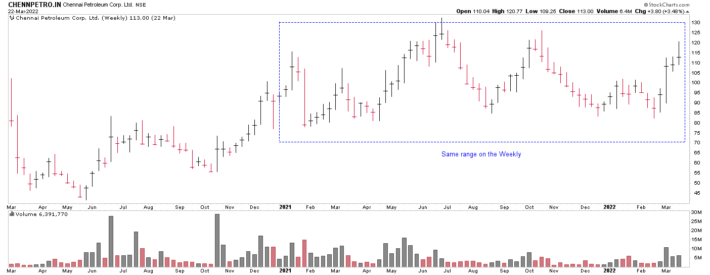 Now, let's go a timeframe higher and see how the same range looks like on a Weekly timeframe chart;